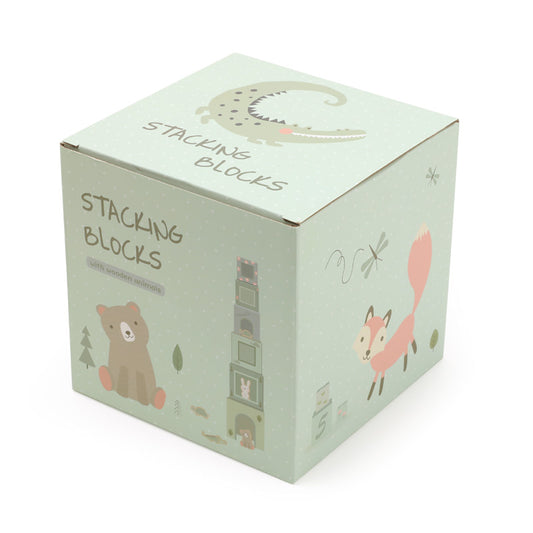 Stacking Cubes With Wooden Animals / Cubos apilables de cartón y animales de madera