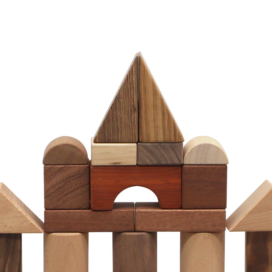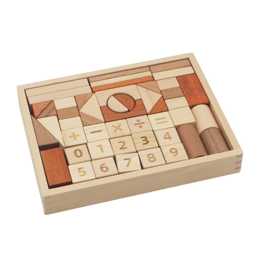 48 WOODEN BLOCKS / Piezas de madera para construir / Material didáctico multifuncional / Formas y números para aprender