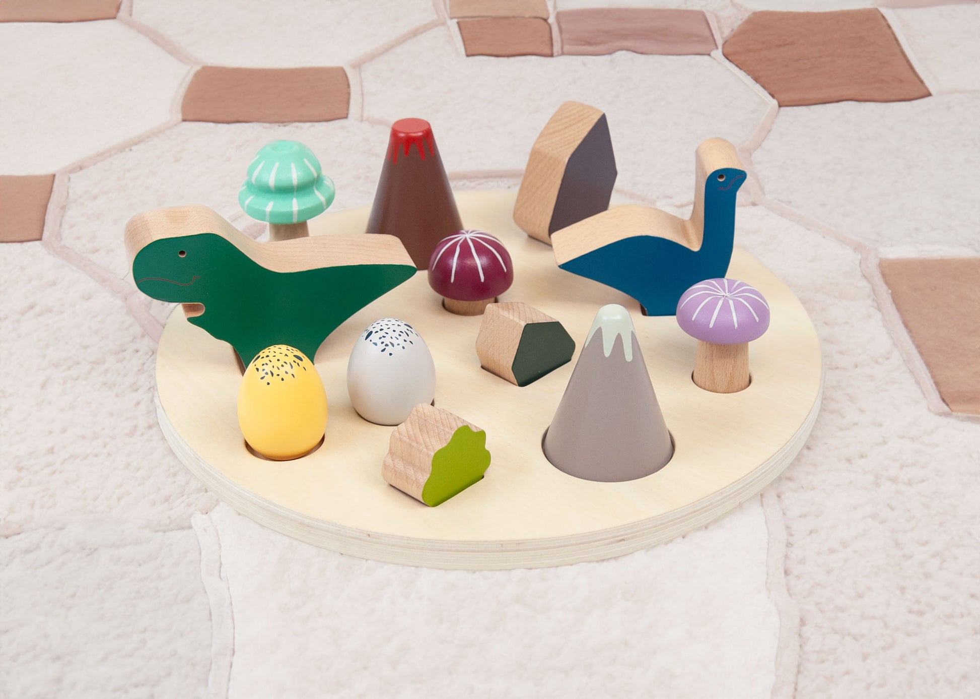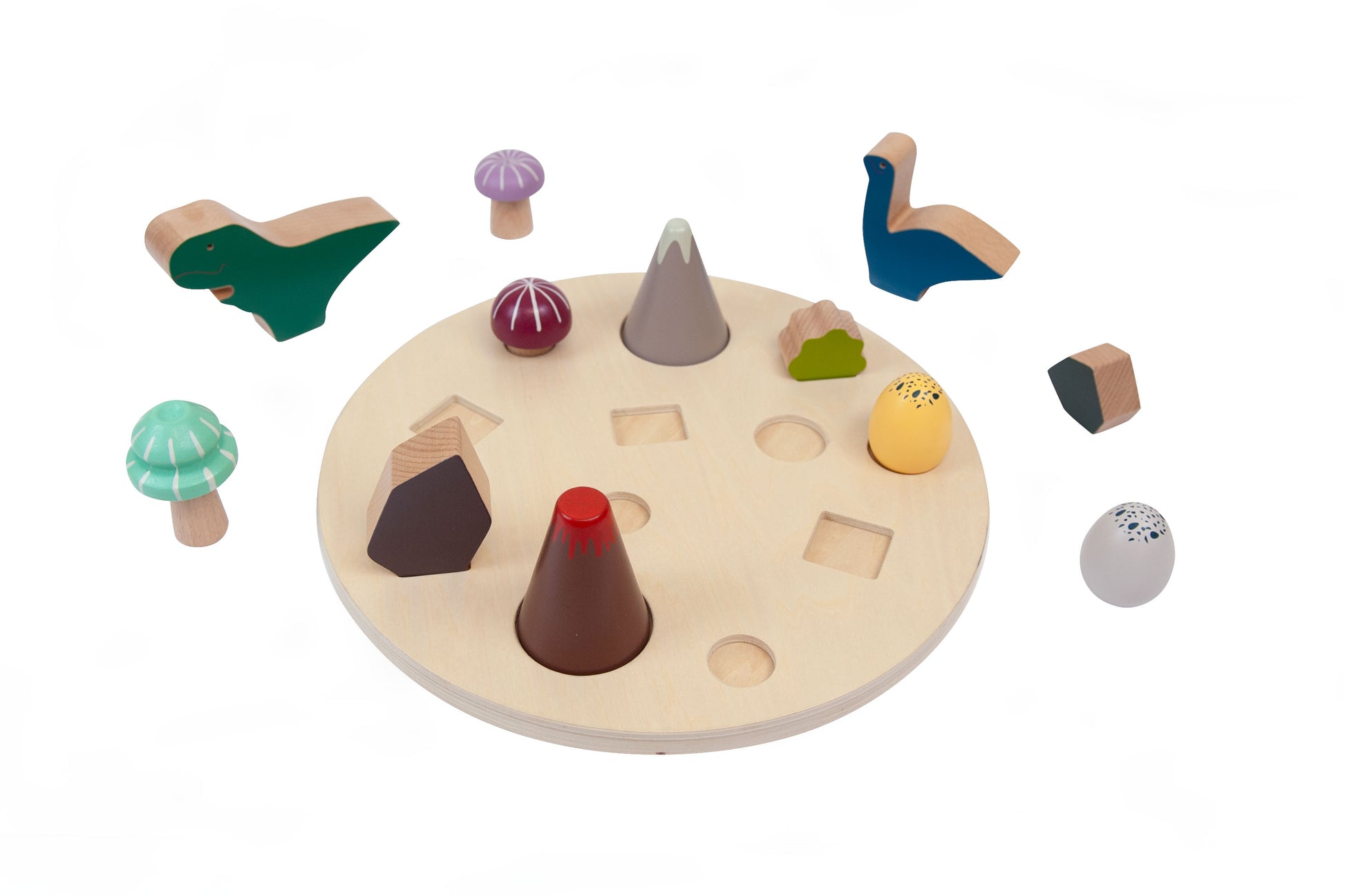Match the figures on the board, according to the geometric shape of the base, to create different 3D scenarios. Use the elements without the board to explore free play and create mini-worlds. Includes 1 board + 12 pieces + cloth bag.
