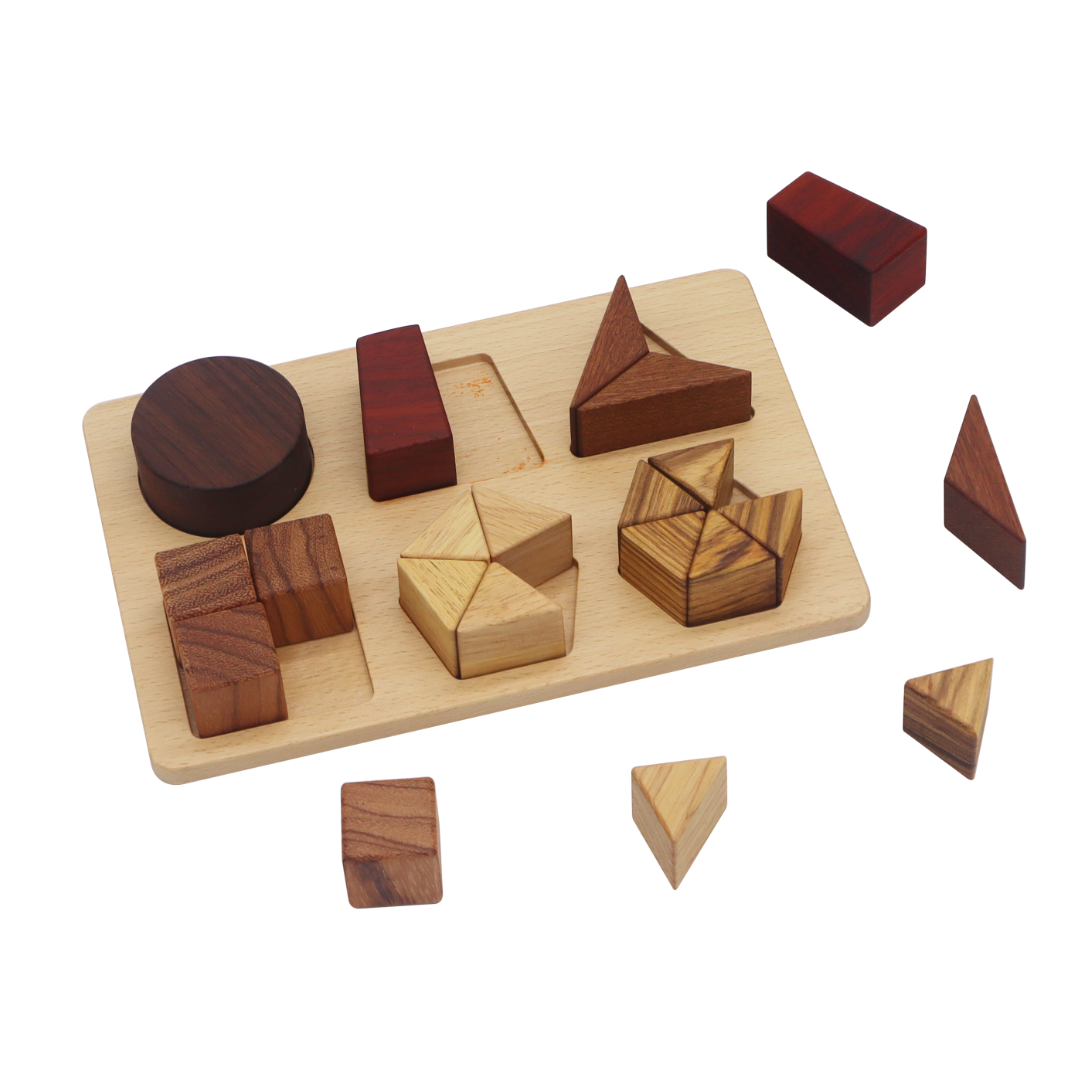 6 GEO SHAPES / 6 formas geométricas / Puzzle progresivo para niños / Puzzle de madera geométrico