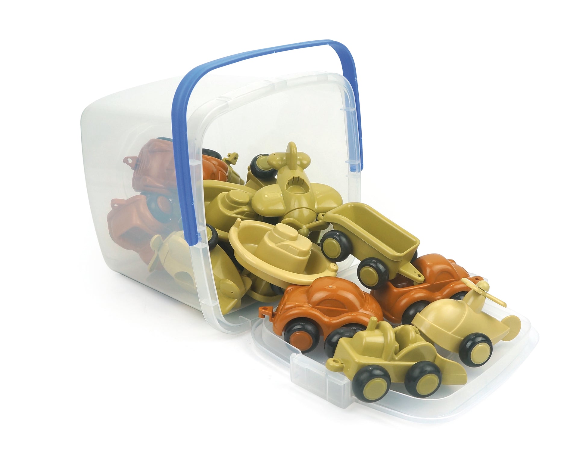 Cube of ECO-Vehicles, planes and boats Chubbies. 10 models. Ecological and recyclable product. Made with renewable resources, 90% bio-based sugar cane. A perfect choice for sustainable children's play.