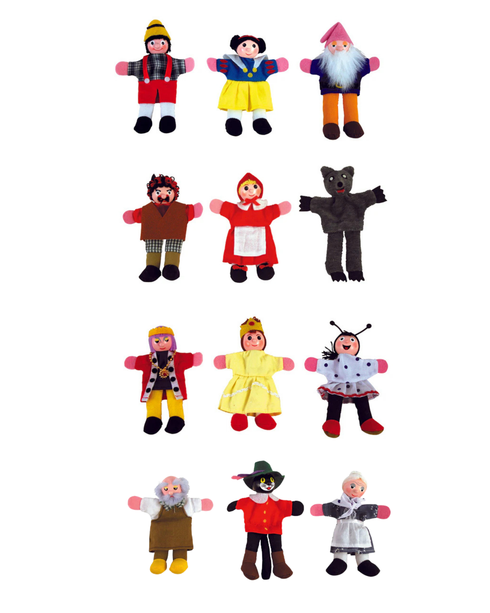 12 divertidísimas marionetas de dedo de distintos personajes para ilustrar los cuentos infantiles más famosos.