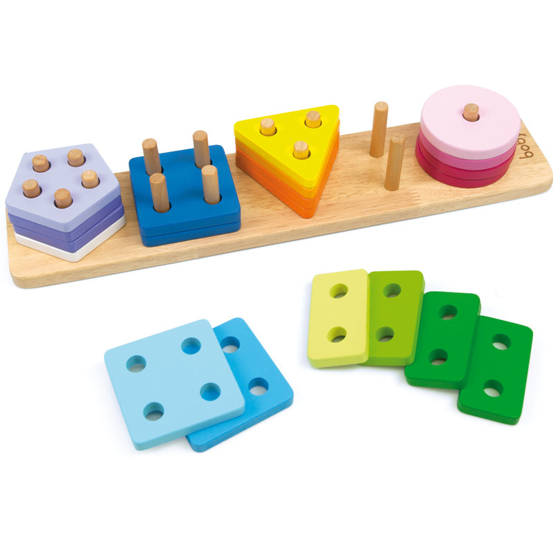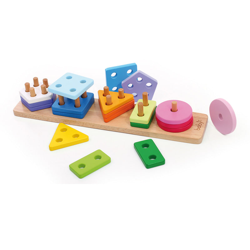 Encaje clasificador de 20 piezas y 5 grupos de formas geométricas.