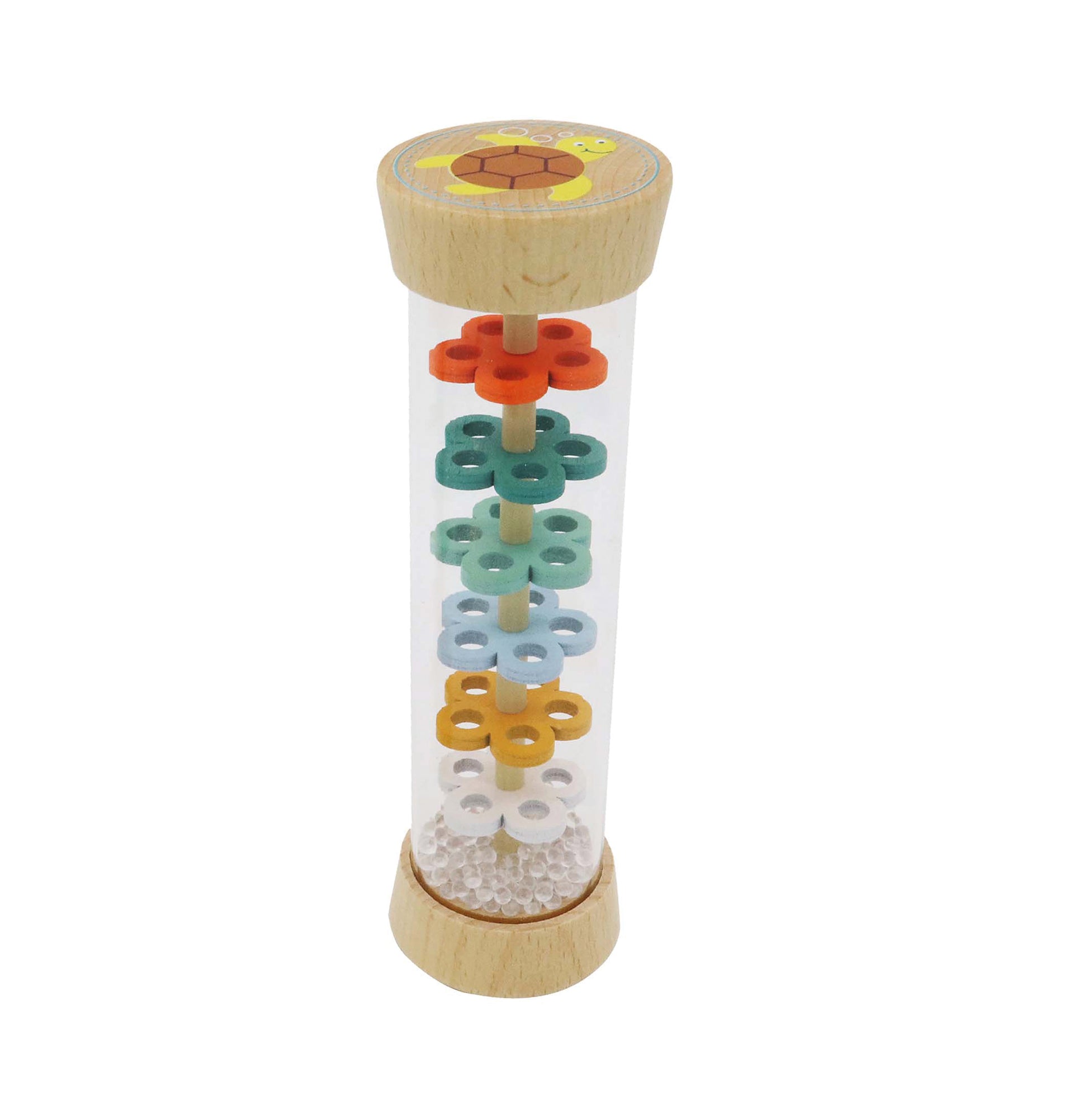 -Palo de lluvia: El sonido rítmico y suave tiene un efecto calmante, estimula el sentido del oído y puede ayudar a los niños a desarrollar una apreciación más aguda de los matices sonoros. Además, su colorido y la forma en que se mueve pueden estimular la vista.