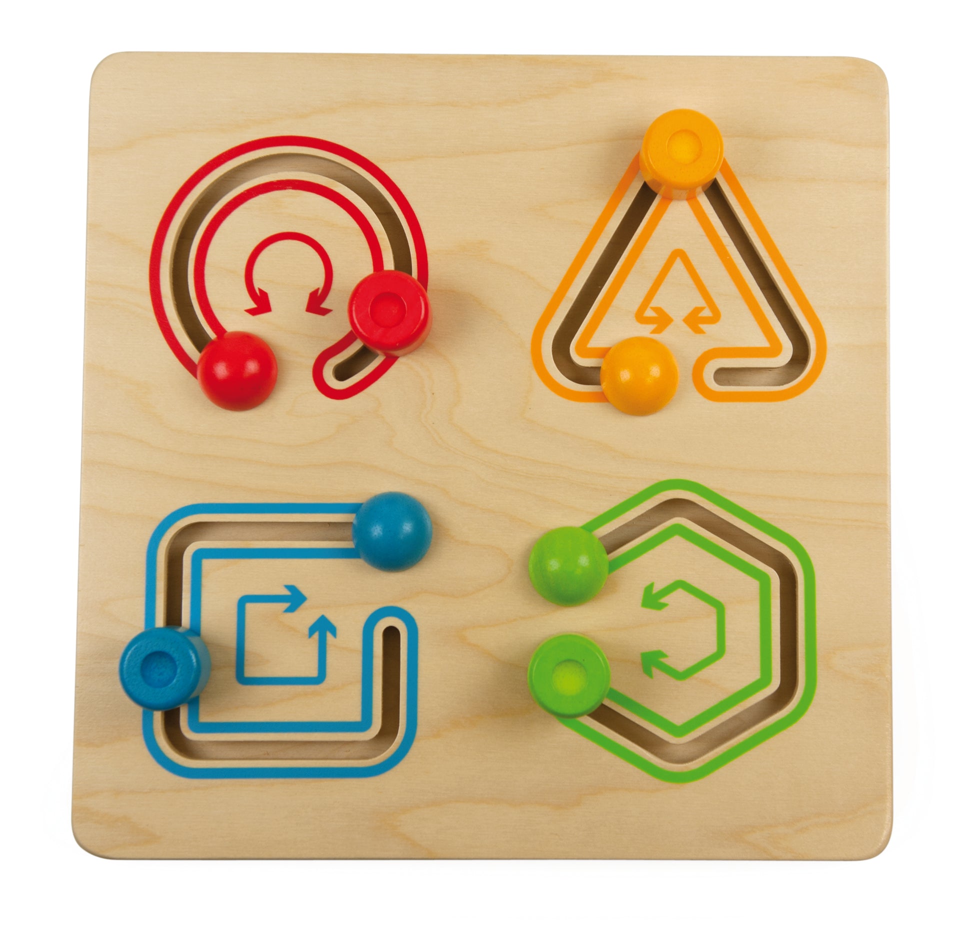 Sliding game with different shapes, to train the movement of the hands. 4 geometric shapes.