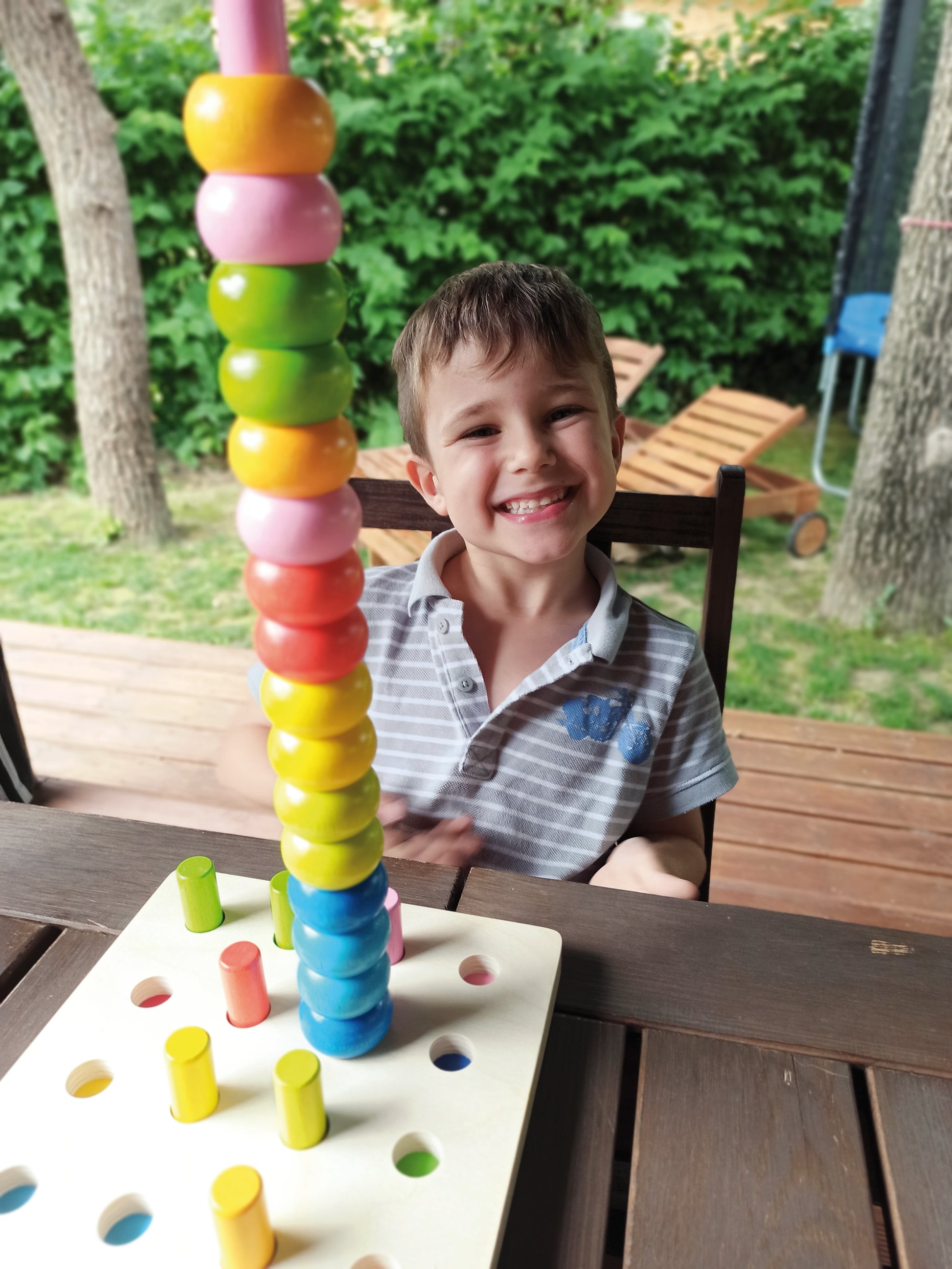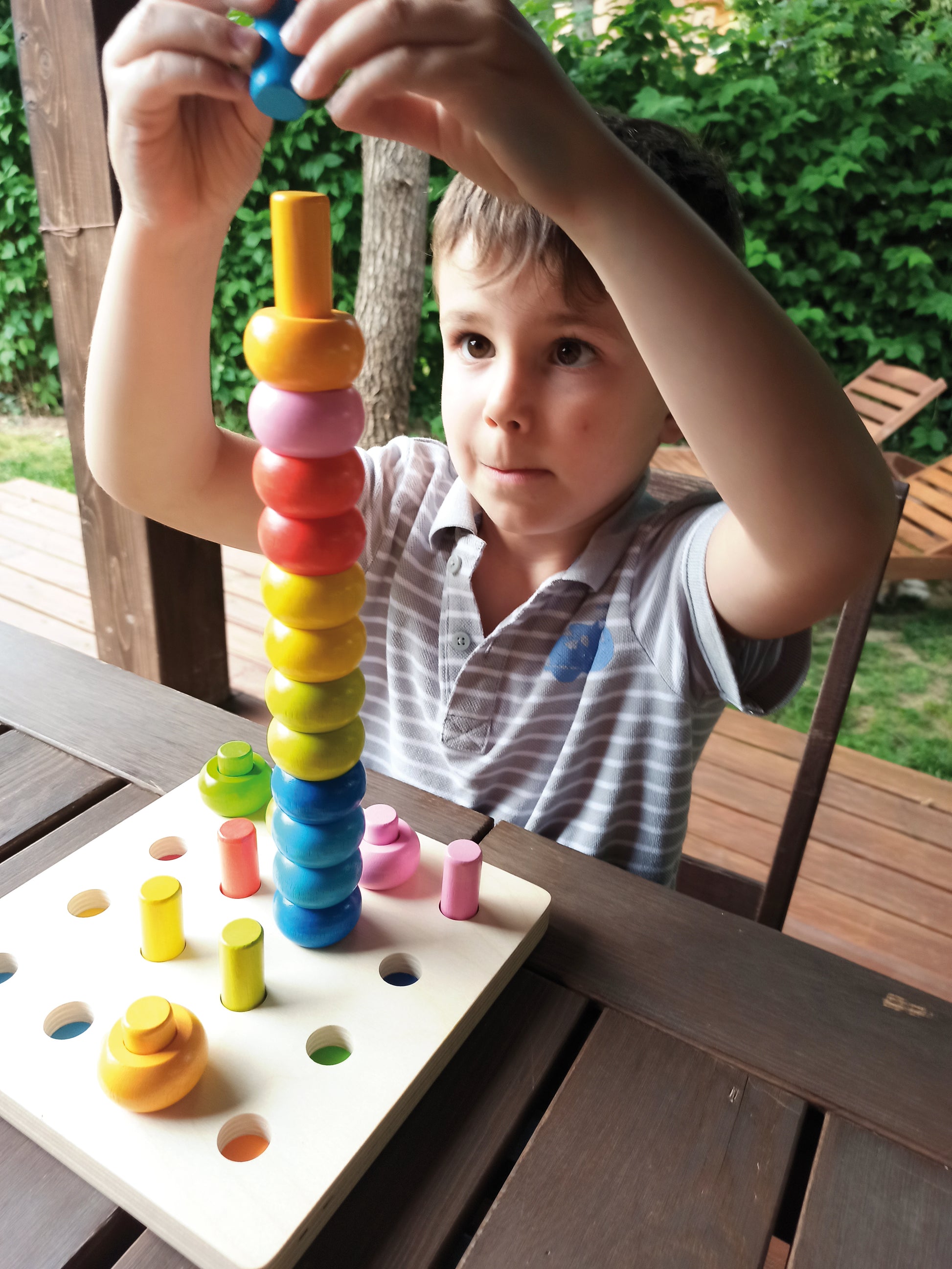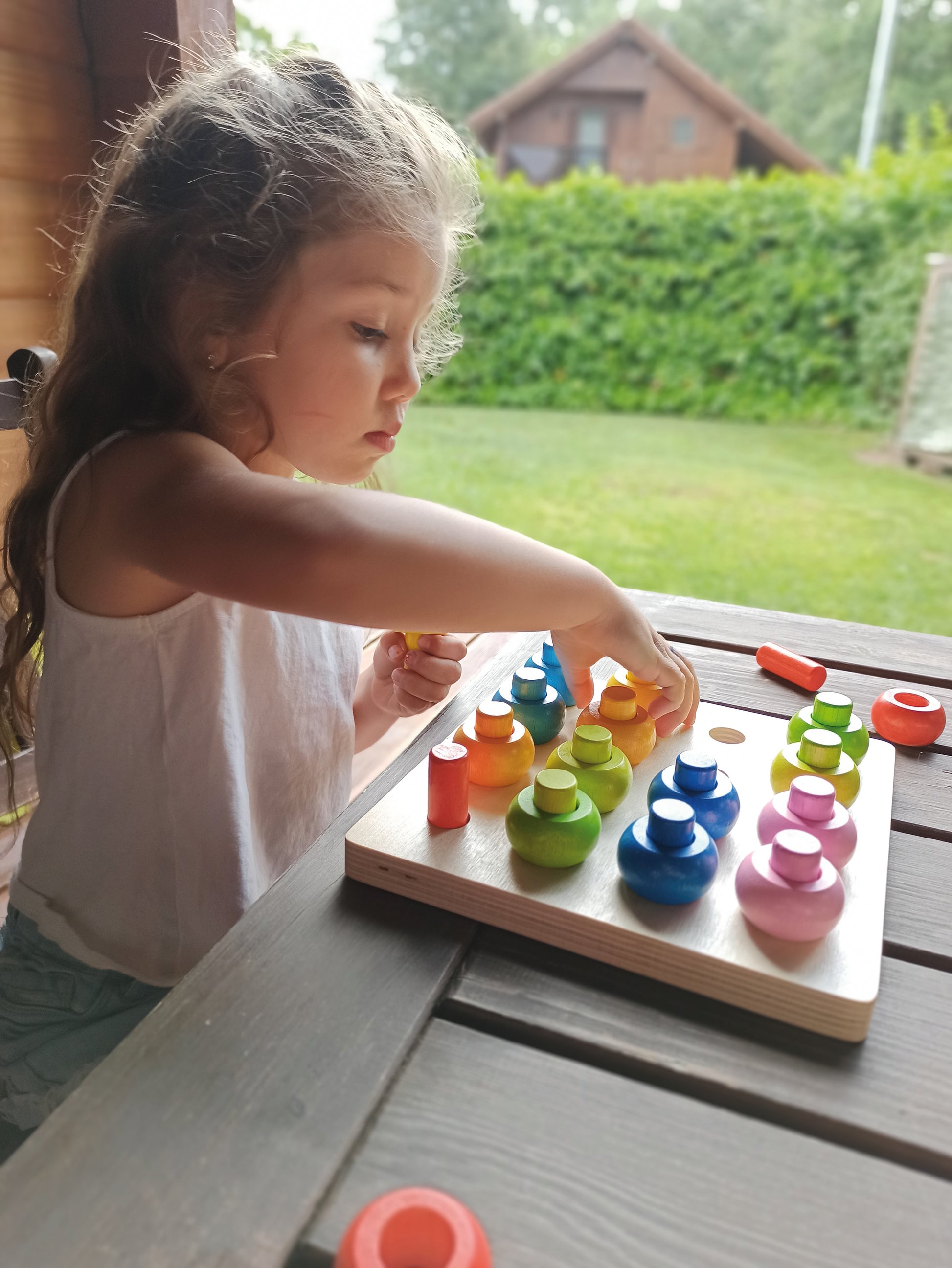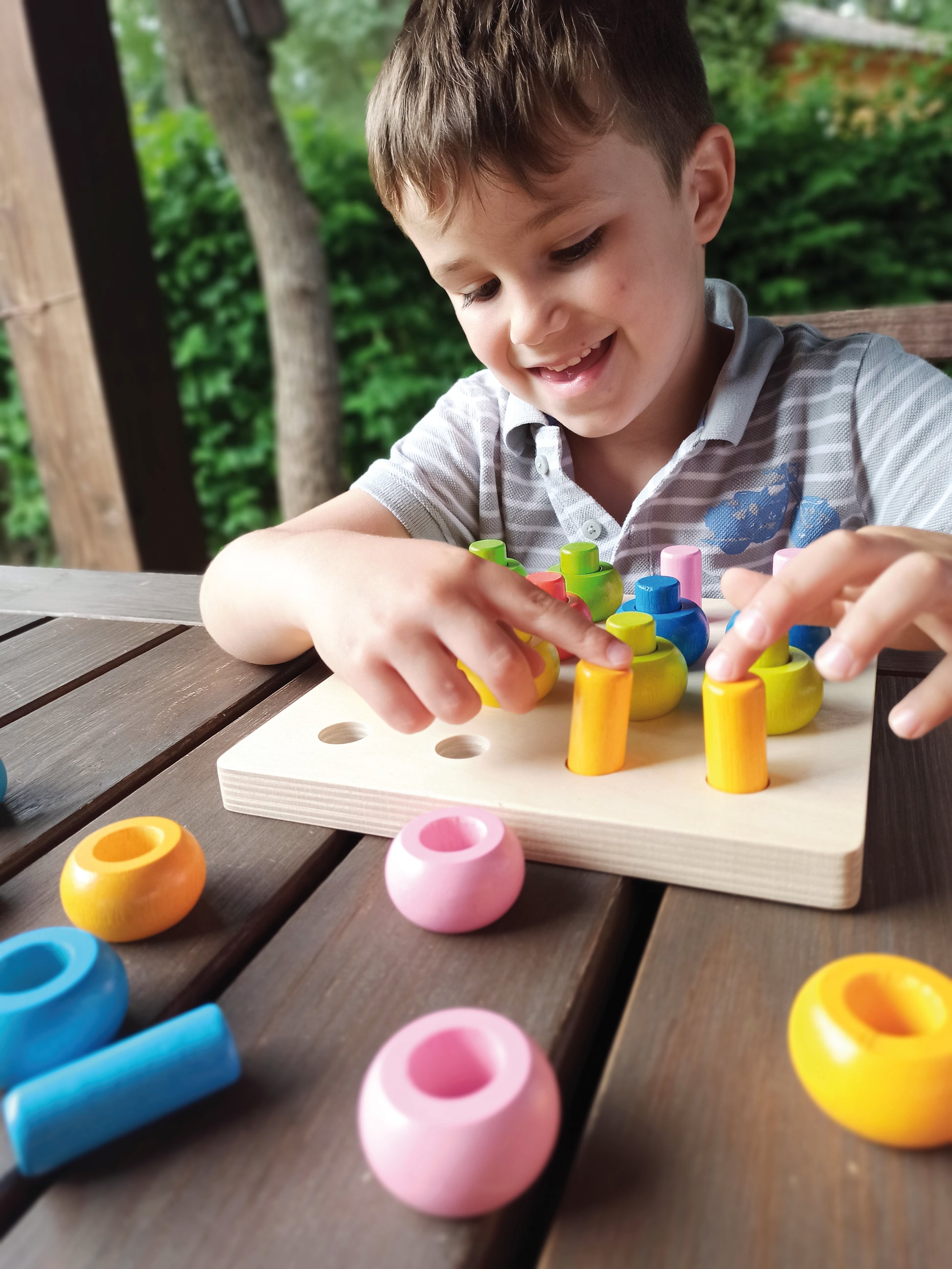 8 colores y 32 piezas para encajar y emparejar en el tablero según el color. Piezas diseñadas para un mejor agarre.