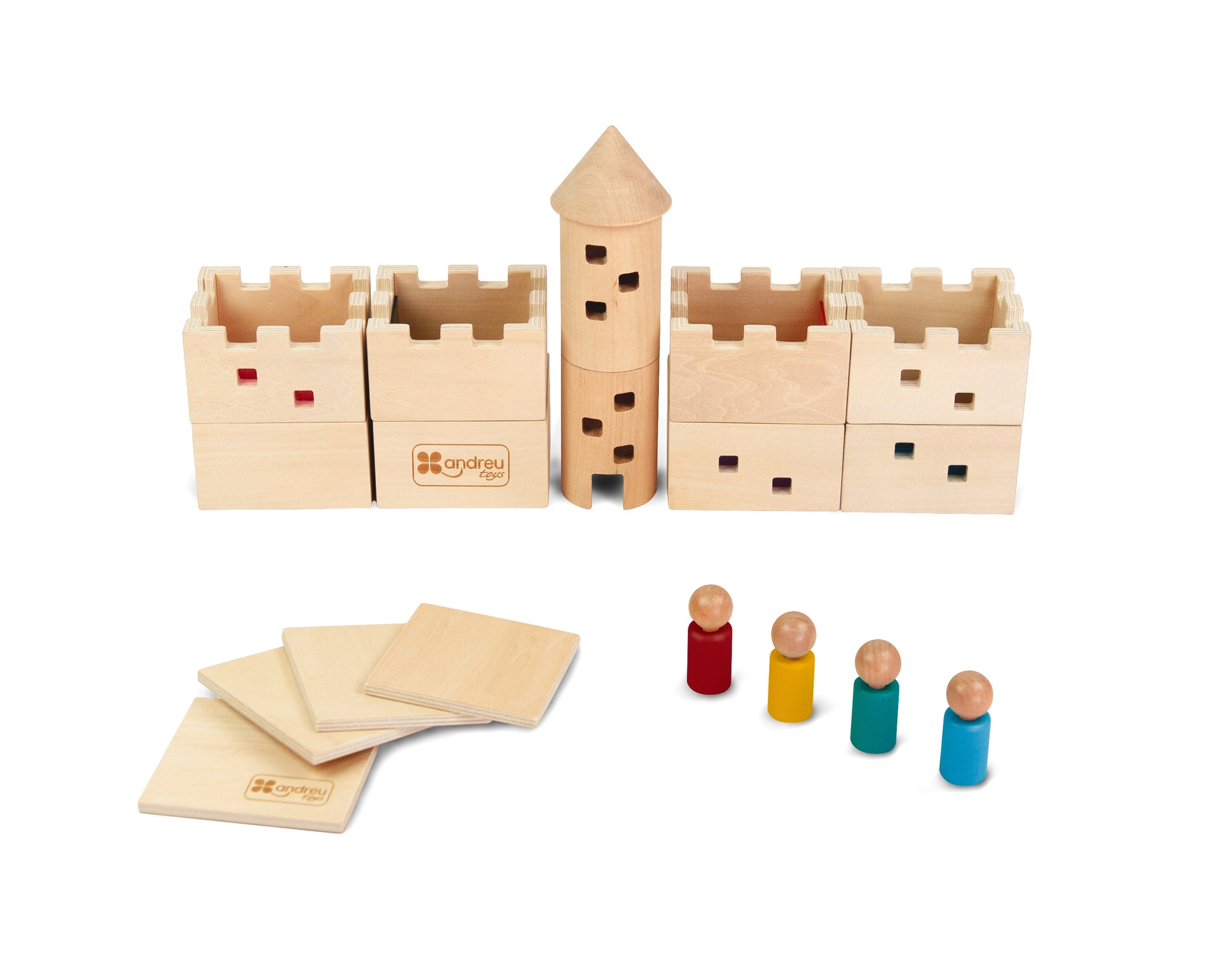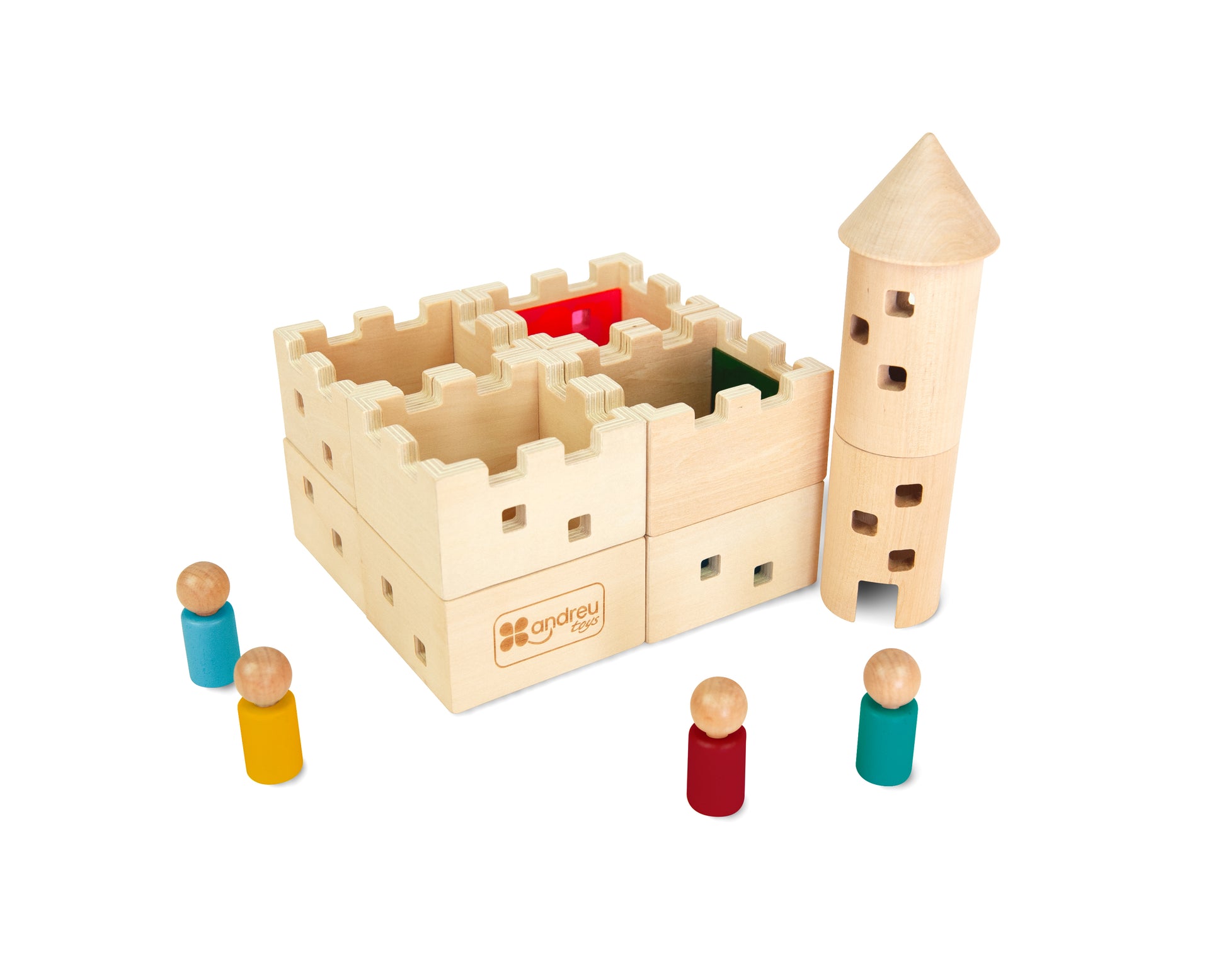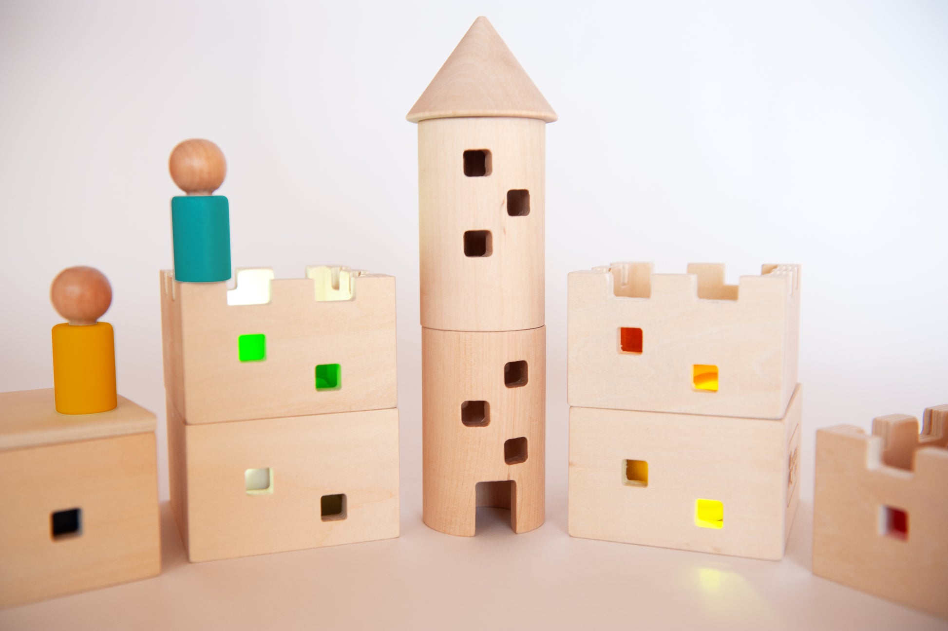 Construye y juega con tu propio castillo medieval de madera, de colores translúcidos. Ideal para las mesas de luz o añadiendo algún elemento lumínico en su interior, (no incluido), para proyectar luces de colores a través de sus ventanas. Incluye 4 personajes y 4 techos o tarimas para cubrir las estancias que queramos y dejar que, en las otras, se proyecte la luz. Medidas pieza 9 x 8 x 5 cm.