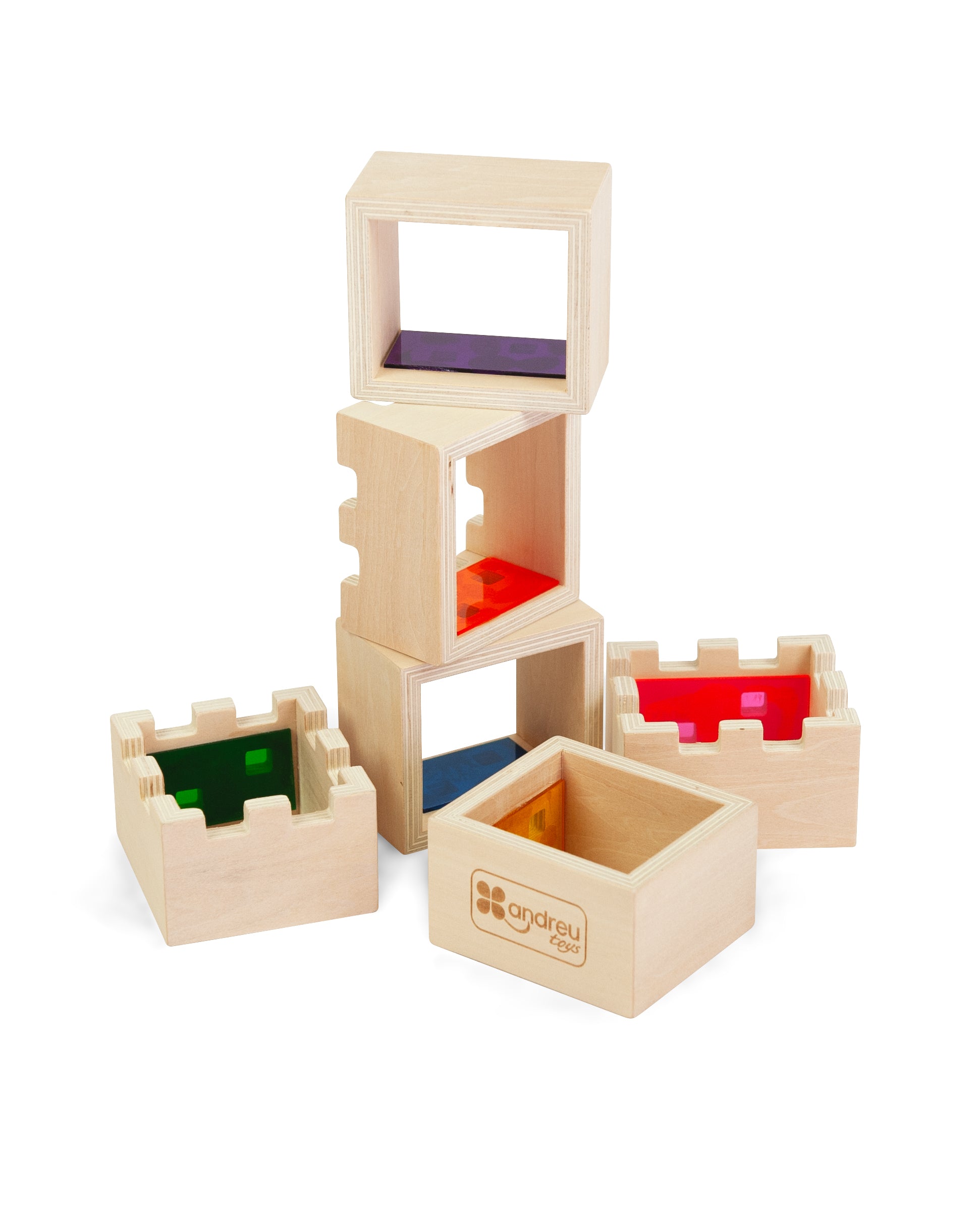 Build and play with your own medieval wooden castle in translucent colours. Ideal for light tables or adding a light element inside (not included) to project coloured lights through the windows. It includes 4 characters and 4 ceilings or platforms to cover the rooms we want and let the light be projected in the others. Piece measures 9 x 8 x 5 cm.