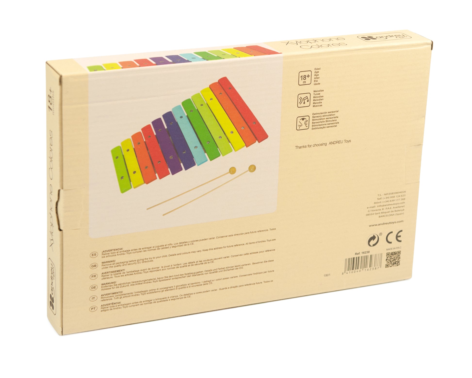 Estupendo xilófono de madera para aprender a tocar las primeras notas musicales.